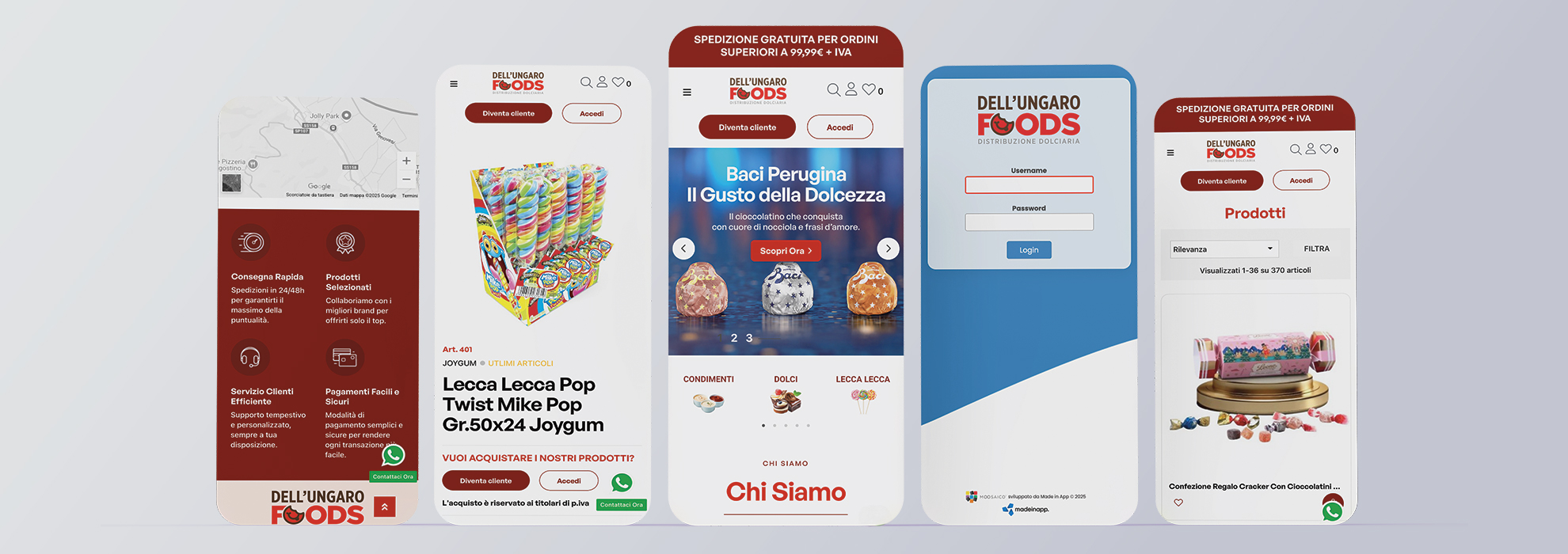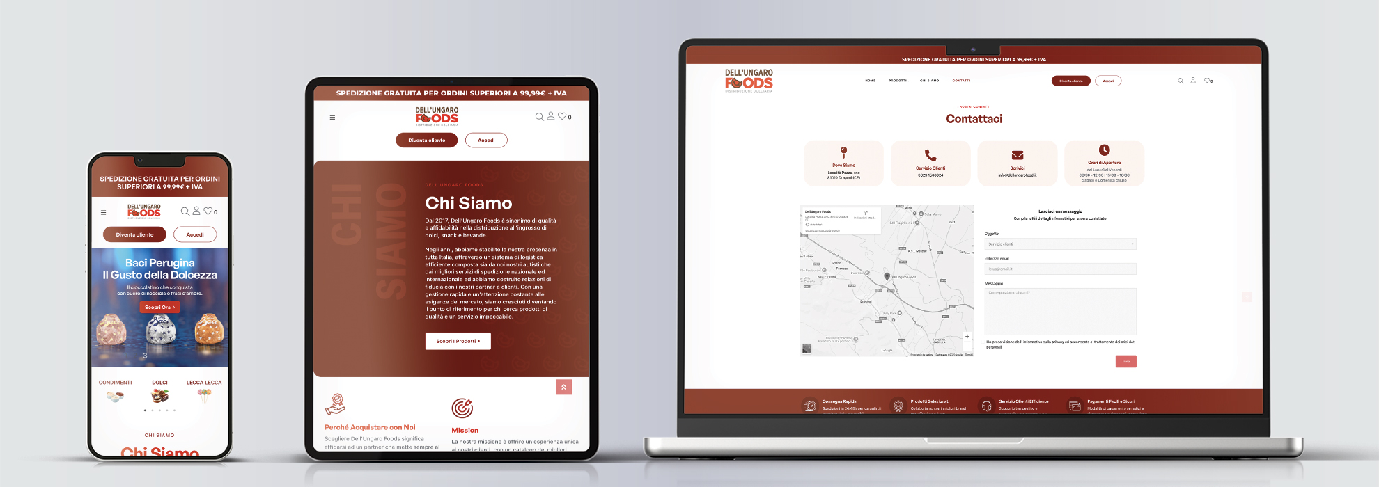 Abbiamo sviluppato un e-commerce integrato al gestionale per l’azienda Dell’Ungaro Foods. questa realtà si occupa di vendita all’ingrosso di prodotti alimentari, snack e dolci. Hanno una sezione dedicata al commercio online al dettaglio anche per privati.